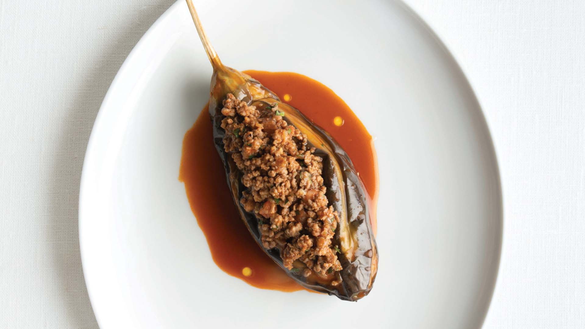 Split Eggplant Filled With Minced Meat