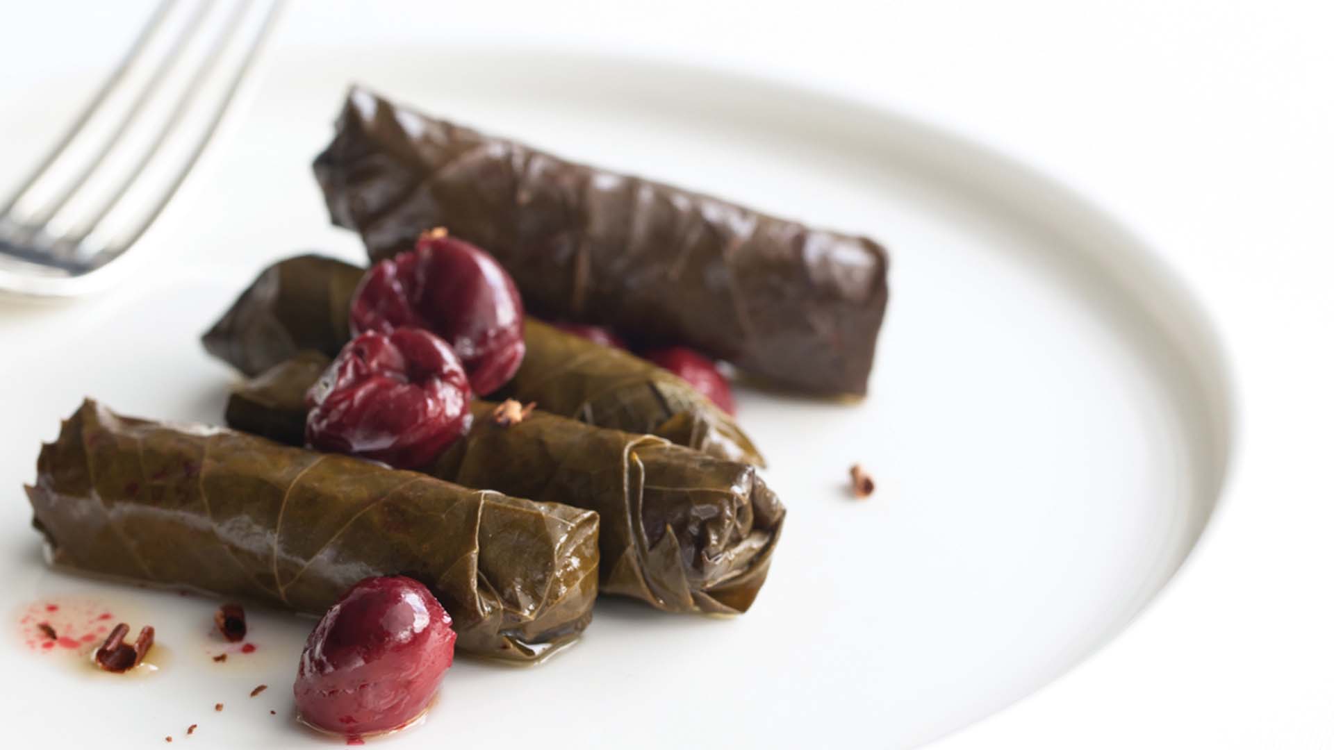 - Once the stuffed vine leaves have cooled, serve with the sour cherries.