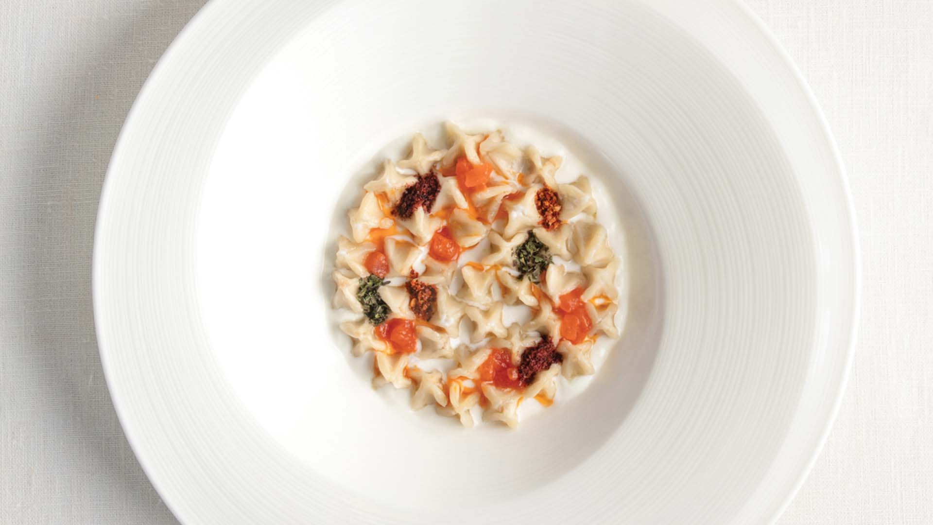 A simple dough made of flour, water and salt, which is then cut into various shapes before being stuffed with a filling and boiled is a tradition that we encounter in many cuisines of the world. It is possible to say that mantı or meat dumplings is the source of this tradition that has spread from Central Asia to most of the world. In this sense, mantı is like a cultural bridge that extends from Asia to Anatolia. Today, mantı is mainly eaten topped with garlic yogurt sauce and completed with a drizzle of browned butter and red pepper flakes. There are different varieties according to each region, and is not only boiled but sometimes can also be baked. In the past, in Kayseri that is famous for its mantı, the skills of new brides were measured according to whether they could make the mantı small enough to fit 40 pieces in one spoon.